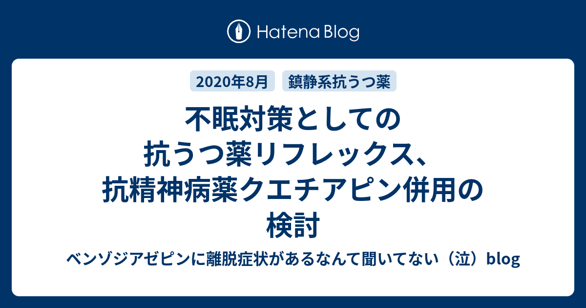 不眠対策としての抗うつ薬リフレックス 抗精神病薬クエチアピン併用の検討 ベンゾジアゼピンに離脱症状があるなんて聞いてない 泣 Blog